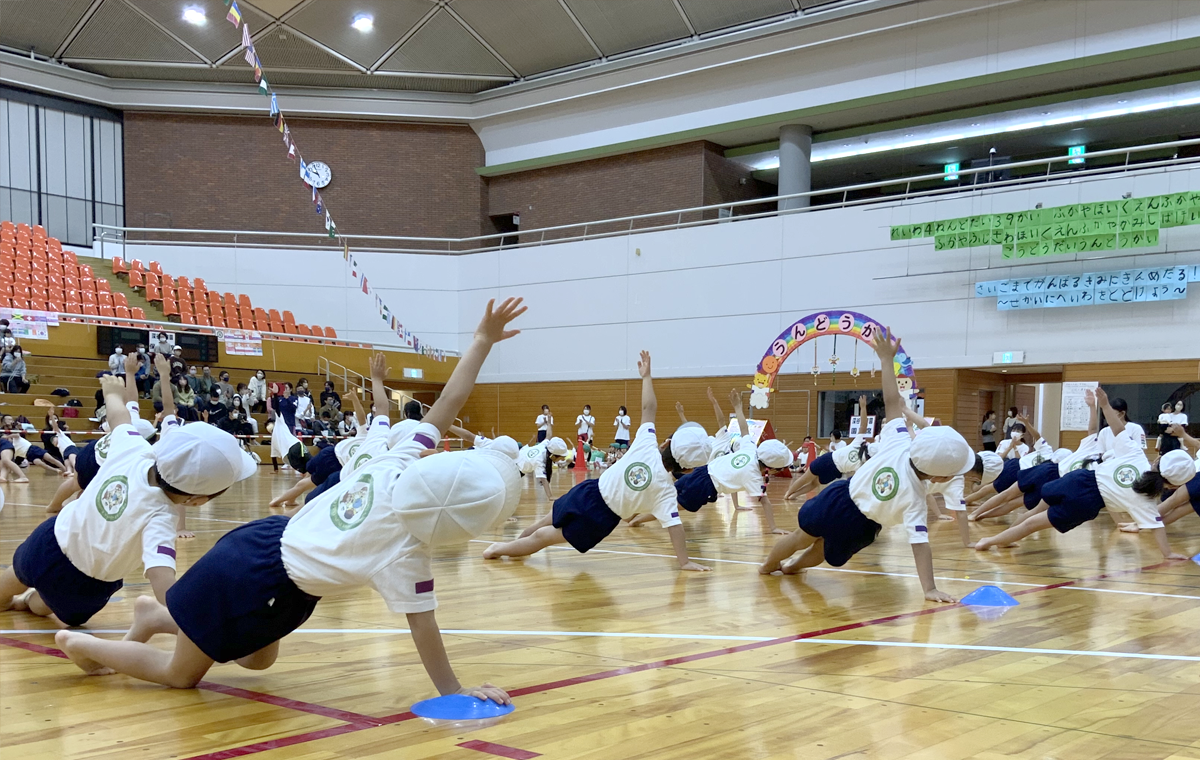 寝返り、ハイハイから組み立て体操、スイミングまで子ども達の身体は驚くほど成長し、運動の範囲も広がります。お友達との協力も相まって「こころ」も大きく成長します。