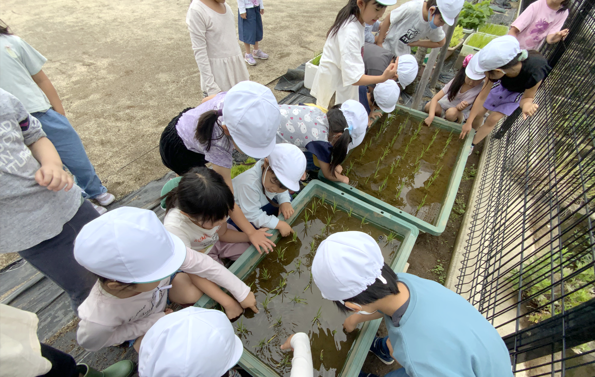 土に親しみ、野菜を育てることによって、いのちの大切さ、食べ物の大切さを実体験します。自分が育てた野菜は、のんの様にお供えし、みんなでおいしく頂きます。